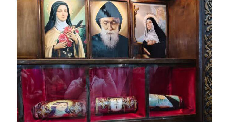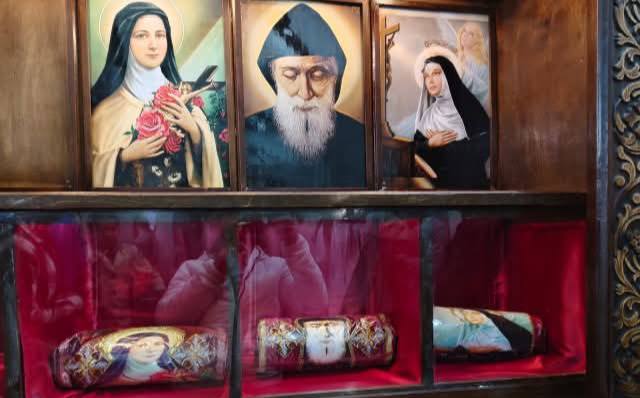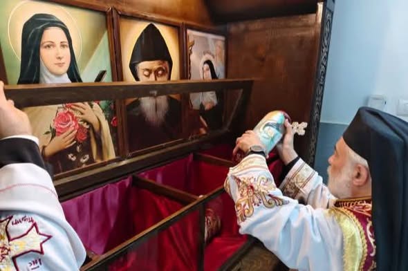 الأنبا باسيليوس يترأس قداس استقبال ذخائر القديسين تريزا وريتا ومار شربل بكنيسة السيدة العذراء بالحواصلية