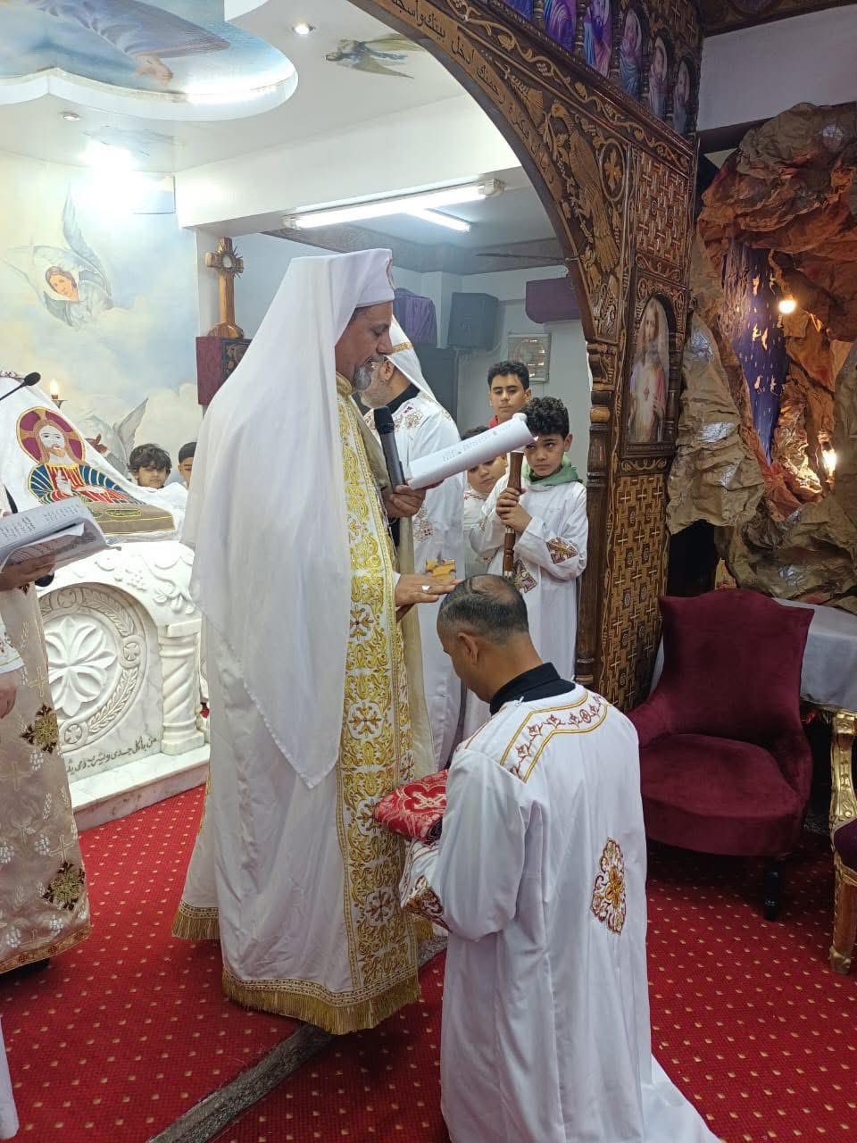 وعقب الكلمة الروحية، منح الأنبا بشارة الدرجة الإيبودياكونية للشماس يسري، مصليًا لأجله ليكون إنجيلًا مقروءً للجميع.