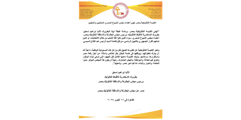 الكنيسة الكاثوليكية بمصركنيسة الموارنة الكاثوليكالمطران شيحان يهنئ رئيس الجمهورية وقيادات الدولة والشعب المصري بذكرى المولد النبوي الشريف