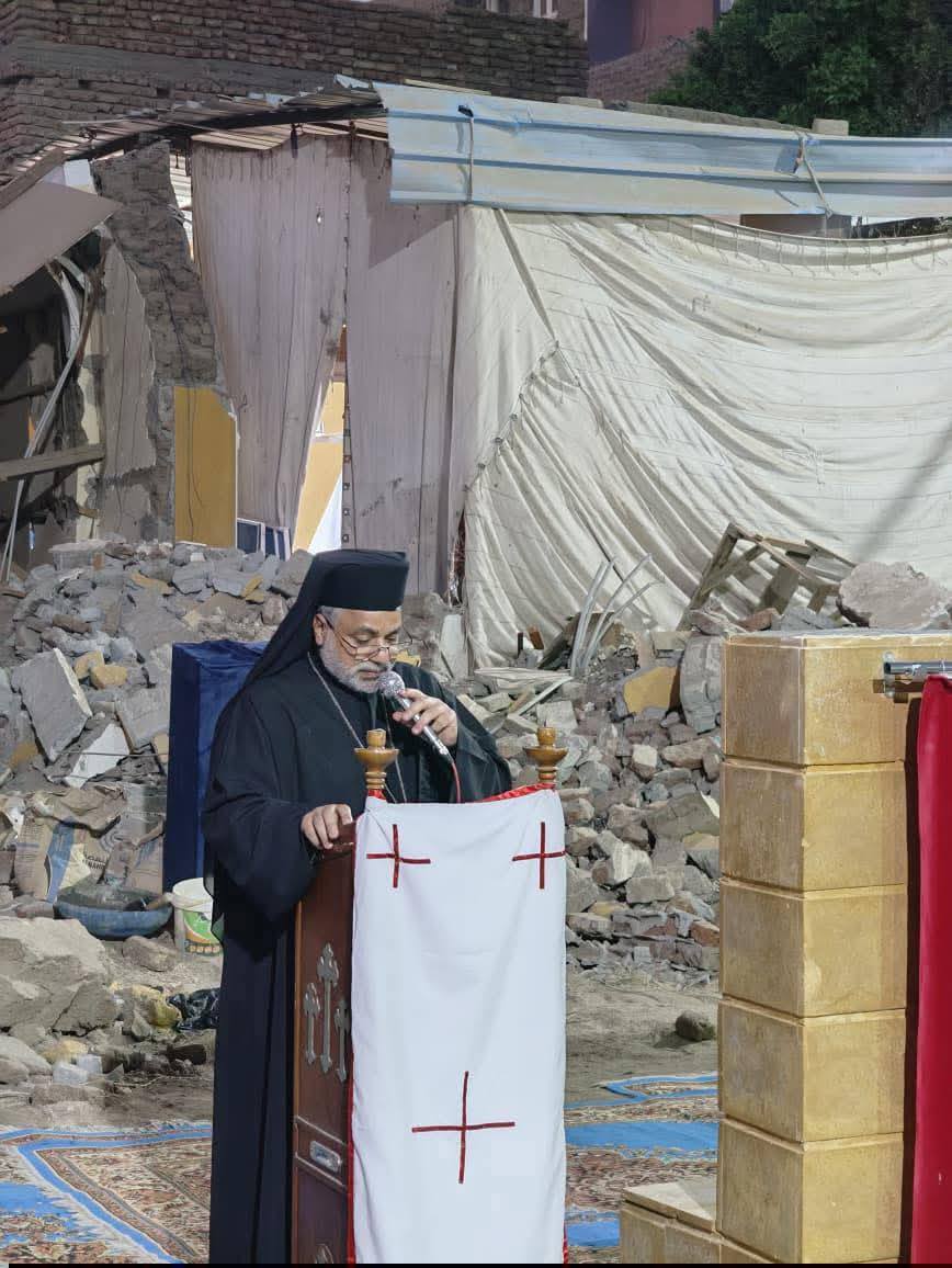 وقام نيافة الأنبا عمانوئيل بشكر الكنيسة مُمثّلة في رأسها غبطة أبينا البطريرك إبراهيم إسحق، الّذي شارك هذه الرّعيّة آلامها بصلواته، وتواصله المستمرّ، كما شاركها في قداس تضامن وتشجيع بعد أحداث الهدم بفترة قصيرة، ما كان علامة تعزية ومساندة للجميع، كما شارك في ذلك القداس العديد من الآباء الأساقفة، وأنّهم في تلك الأثناء مُتحدّين في الصّلاة لأجل الكنيسة، كاتّحاد الأعضاء في الجسد الواحد للمسيح.