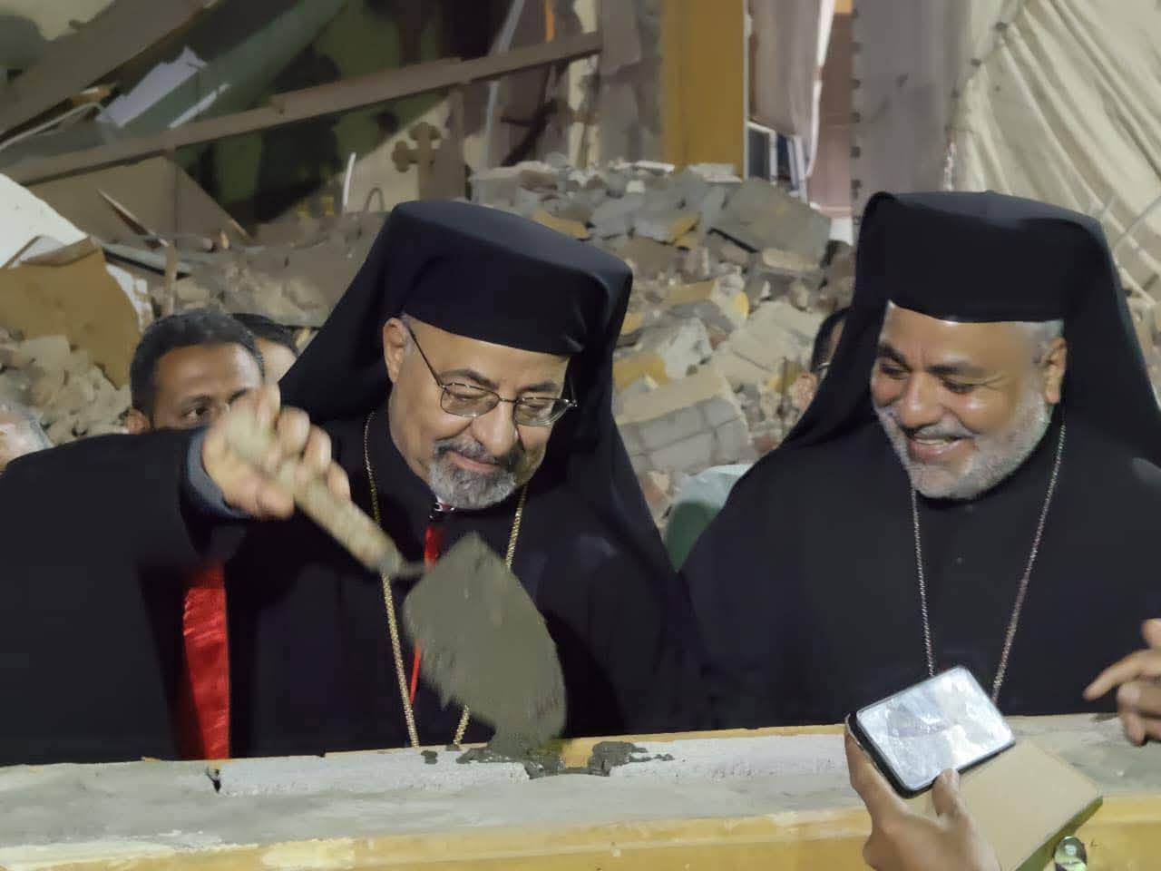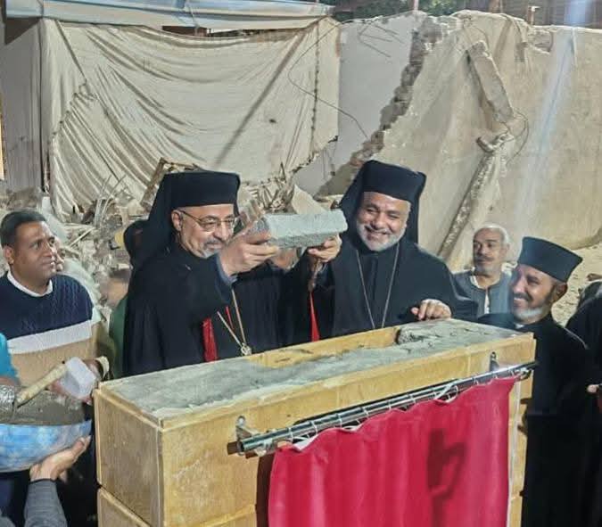 غبطة البطريرك الأنبا إبراهيم إسحق ونيافة الأنبا عمانوئيل يضعان حجر أساس كنيسة العذراء بالمريس