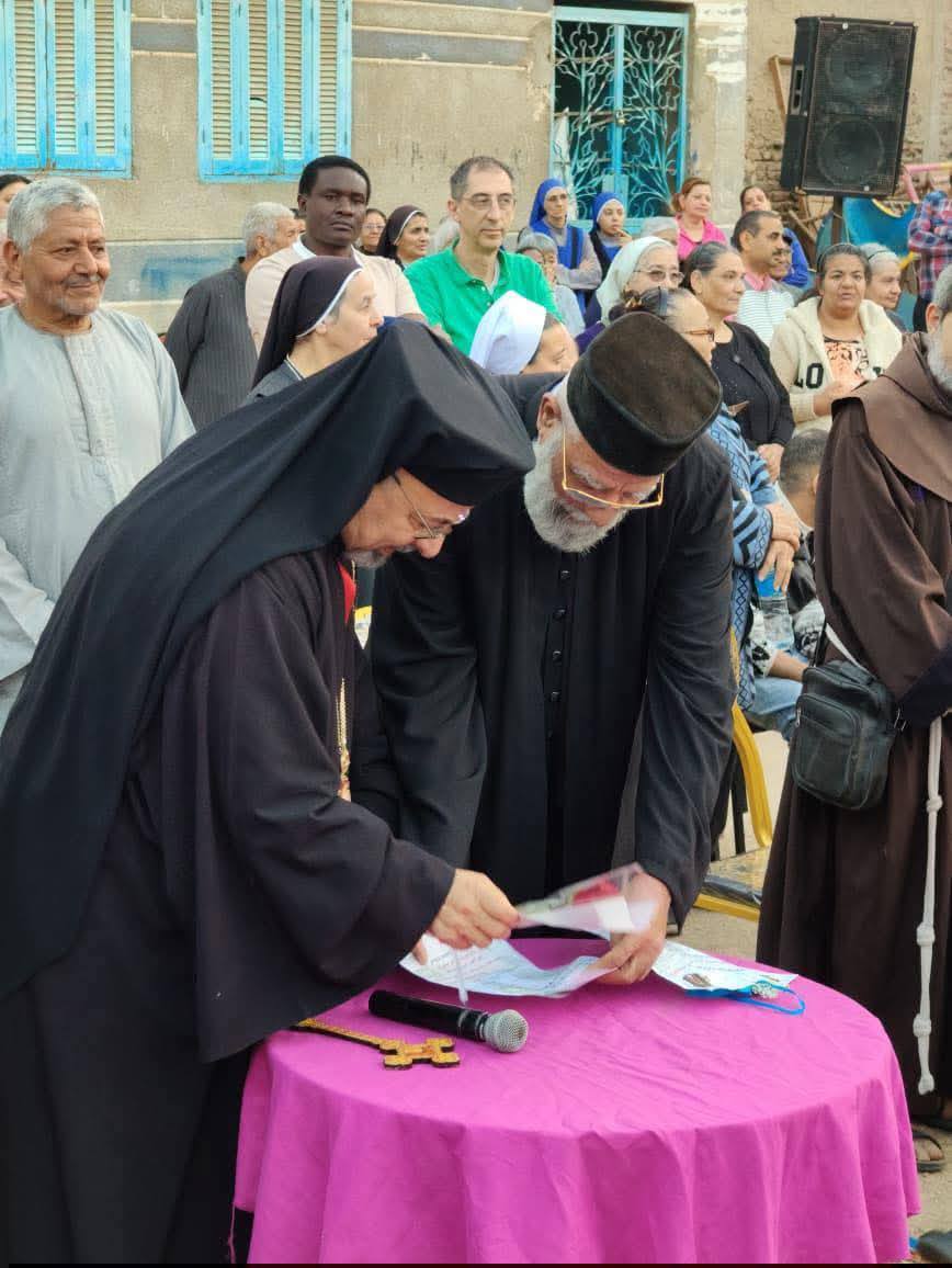 كذلك، قام راعي الإيبارشيّة بتوجيه شكر لكلّ الآباء القمامصة والكهنة، والرّهبان والرّاهبات، وعلى رأسهم الأب بولس فاروق، الّذي كان سندًا ومُشجّعًا لشعبه، وحاضرًا معهم في أصعب اللّحظات، ورافعًا راية الرّجاء على الدّوام. كما قام نيافته بشكر عائلات القرية، مُسلمين ومسيحييّن، على وحدتهم الوطنيّة، وتماسكهم معًا في نسيج واحد، حتّى أصبحت العلاقة بينهم هي علاقة أهل وليست فقط علاقة جيرة، فصاروا نموذجًا حيًّا للشعب المصريّ الأصيل المُتماسك في وحدة ومحبّة.