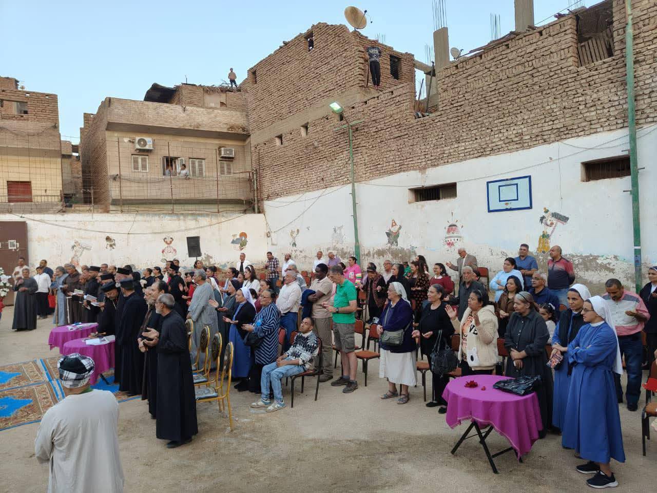 جاء ذلك بمشاركة عدد من الآباء الكهنة، والرهبان والراهبات، وأبناء مختلف الكنائس، بحضور عائلات قرية المريس مُسلمين ومسيحييّن، في مشهد جسّد روح الوحدة الوطنيّة، والتّماسك الشّعبيّ، للاحتفال بهذا الحدث الهامّ، وذلك عقب صدور قرار تقنين الكنيسة، وإعادة بنائها، في خطوة تعكس احترام الدّولة لسيادة القانون، وصون المُقدّسات، واحترام الأديان، ودور العبادة.