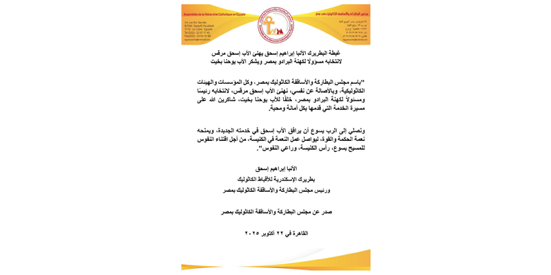 الكنيسة الكاثوليكية بمصركنيسة الأقباط الكاثوليككنيسة الموارنة الكاثوليكغبطة البطريرك الأنبا إبراهيم إسحق يشارك في احتفال اليوبيل الماسي لإنشاء إيبارشية القاهرة المارونية في المواقع الإخبارية