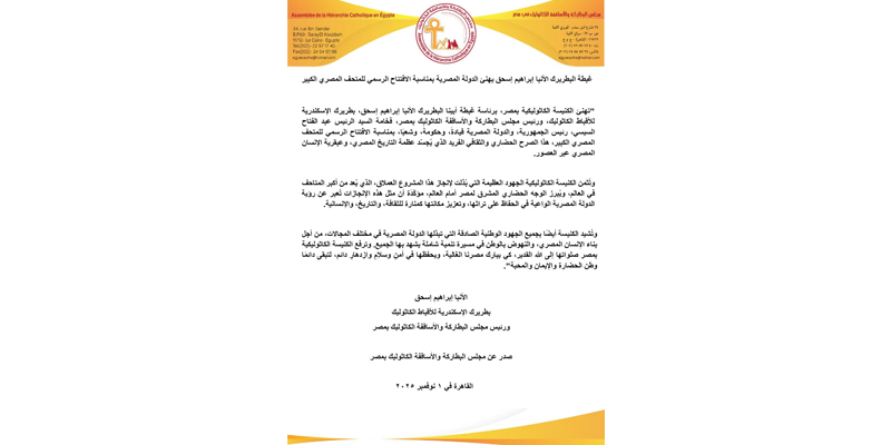 Homeالكنيسة الكاثوليكية بمصرغبطة البطريرك الأنبا إبراهيم إسحق يهنئ الدولة المصرية بمناسبة الافتتاح الرسمي للمتحف المصري الكبير في المواقع الإخبارية33333333333333 ← → x ×