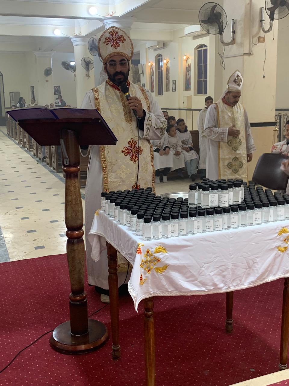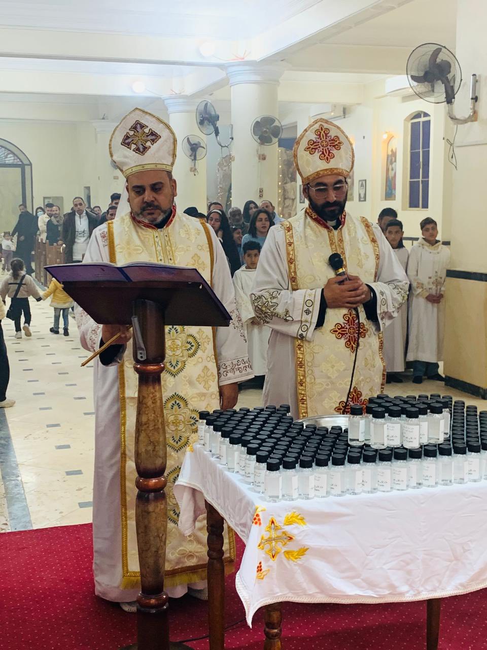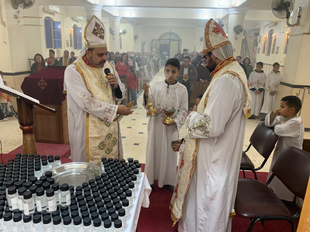 ترأس الصلوات الأب جوزيف زكريا، والأب جوفاني قاصد خير، راعيا الكنيسة، حيث تضمن الاحتفال توزيع مياة اللقان عيد الغطاس، وأيضًا مياه من نهر الأردن، من المغطس الموضع الذي تعمد فيه الرب يسوع المسيح.