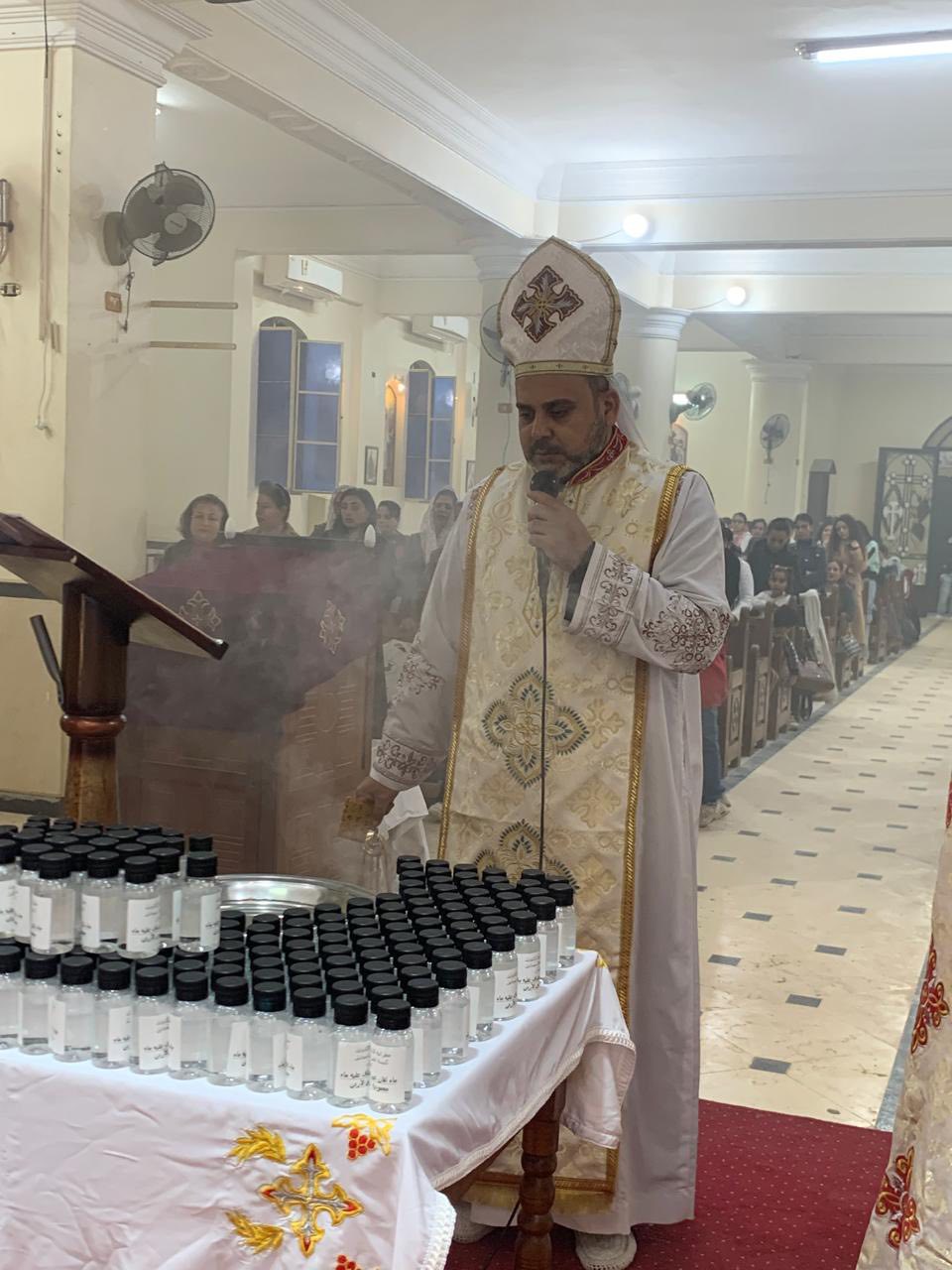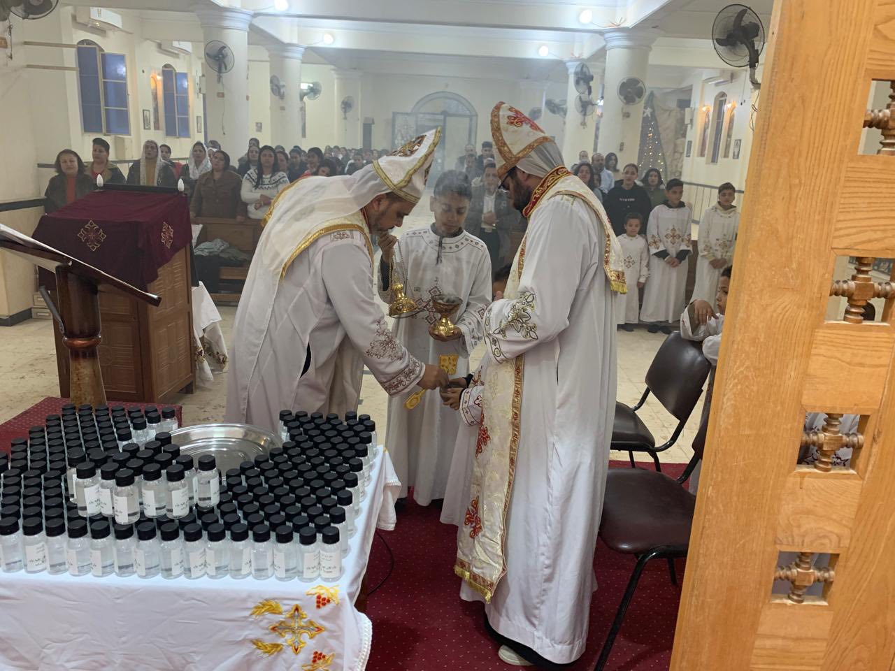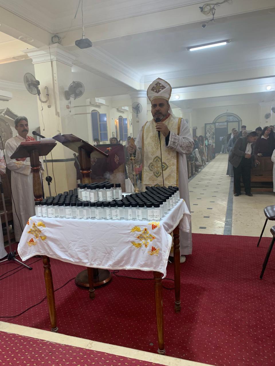 ترأس الصلوات الأب جوزيف زكريا، والأب جوفاني قاصد خير، راعيا الكنيسة، حيث تضمن الاحتفال توزيع مياة اللقان عيد الغطاس، وأيضًا مياه من نهر الأردن، من المغطس الموضع الذي تعمد فيه الرب يسوع المسيح.