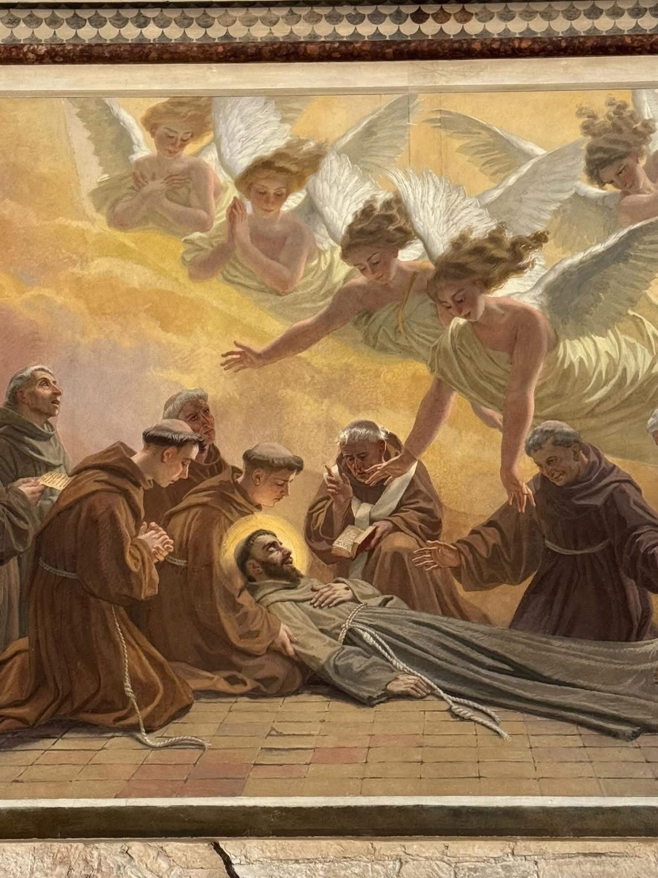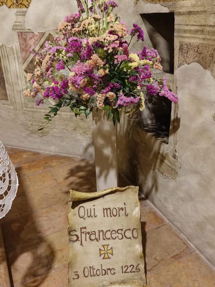 وكان هذا المكان، الذي كان في القرن الثالث عشر مجرد مستوصف متواضع، وأكواخ بسيطة شكّلت نواة الأخوية الفرنسيسكانية الأولى، شاهدًا على تواضع القديس الجذري، حين طلب أن يُوضَع على الأرض العارية في لحظة عبور تعبّر بعمق عن التصاقه بالإنجيل.