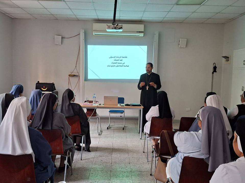 وقدم الأب المطران شرحًا لوثيقة قداسة البابا لاون الرابع عشر “لقد أحببتك”، متناولًا عدة أفكار، من بينها: كيف يختار الله الفقراء؟، ويُظهر لهم ذاته، وكيف يهبنا محبته المجانية.