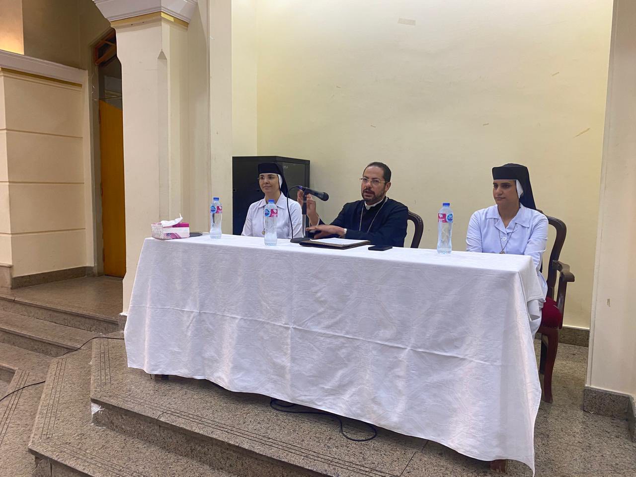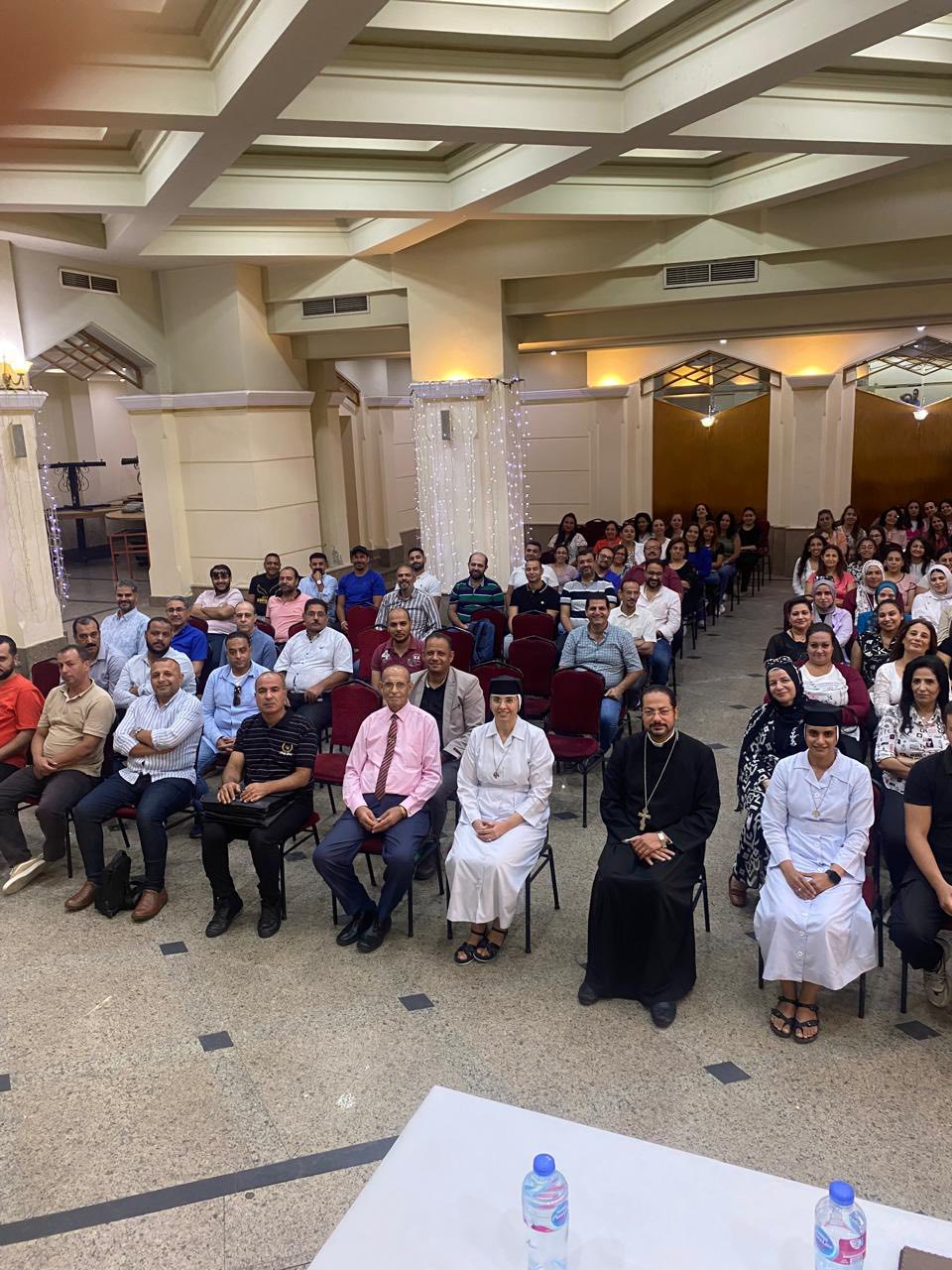 تلا ذلك، لقاء تربوي مع الأنبا باخوم، الممثل القانوني لمدارس سان جورج، الذي نقل تحيات تهنئة غبطة البطريرك الأنبا إبراهيم إسحق، ثم تحدث نيافته حول “أهمية تربية الأجيال على القيم الأصيلة”، ونشر المحبة، والمعاملة الحسنة كأسلوب حياة، مؤكدًا أهمية دور المعلمين في الحضور الفعّال مع أبنائهم، وكيفية التعامل الواعي مع وسائل التواصل الاجتماعي لحماية أبنائنا من سلبياتها، ومكانة الذكاء الاصطناعي كأداة مفيدة تبقى قيمتها الحقيقية بيد الإنسان الذي يبدع، ويوجّه.