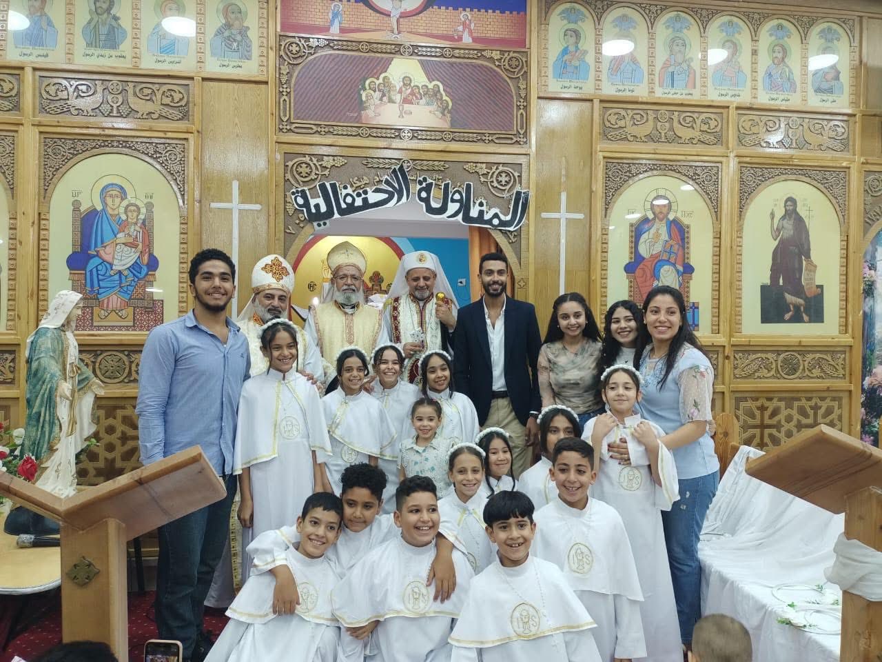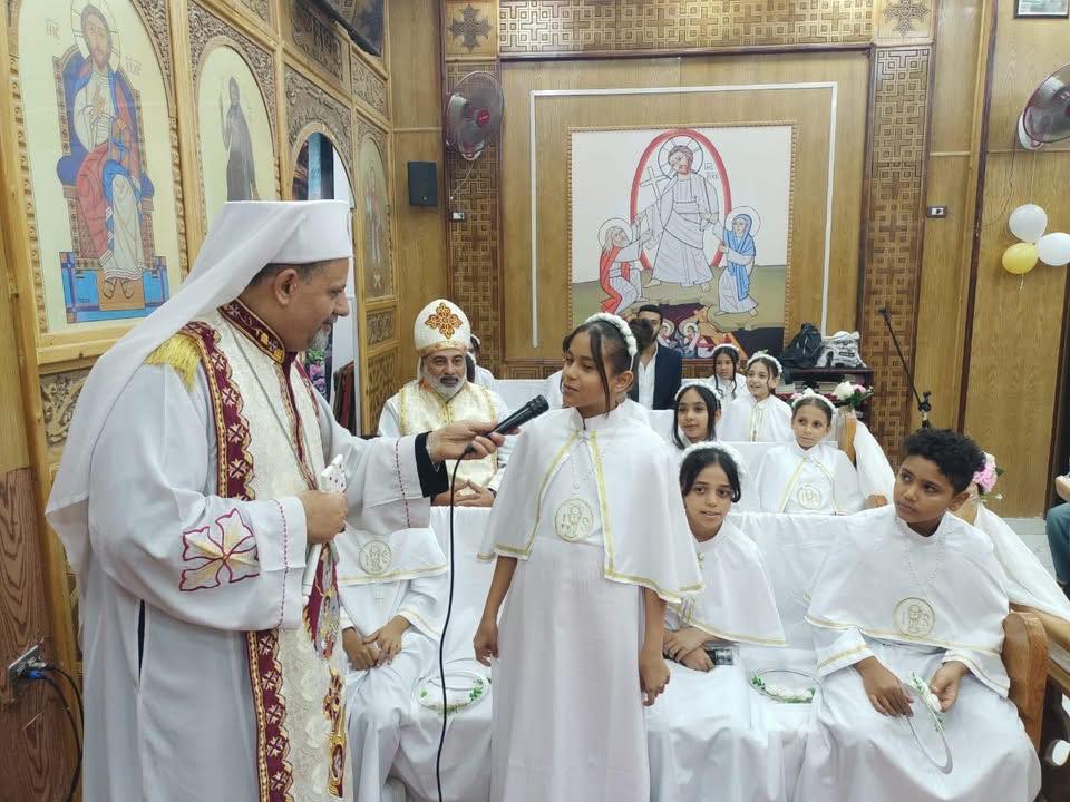 جاء ذلك بمشاركة الأب ميخائيل إبراهيم، راعي الكنيسة، والأب يوسف عادل، نائب راعي كنيسة السيدة العذراء، بالبدرمان، حيث قدم صاحب النيافة الذبيحة الإلهية، لأجل المحتفى بهم ليكونوا علامة خير، وسلام للكنيسة، وللمجتمع.