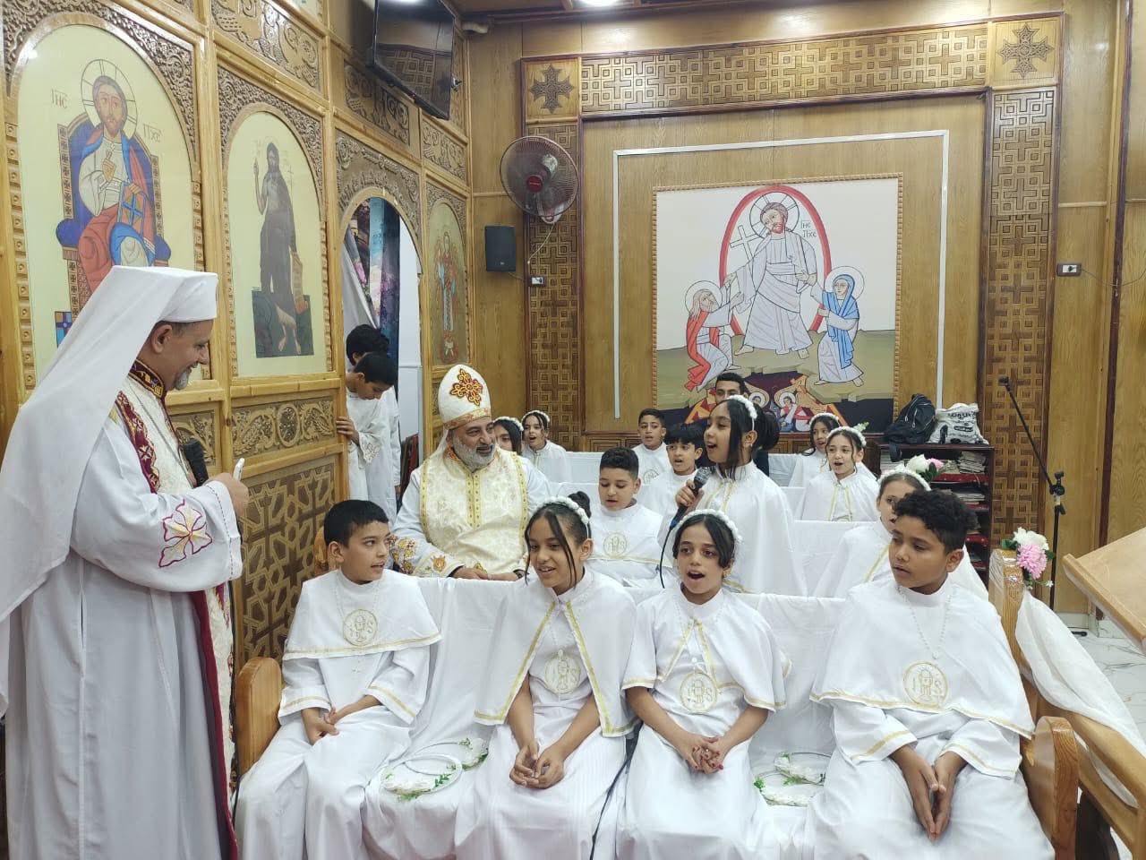 ترأس نيافة الأنبا بشارة جودة، مطران إيبارشية أبوقرقاص وملوي وديرمواس للأقباط الكاثوليك، قداس المناولة الاحتفالية لعدد من أبناء وبنات كنيسة القديس يوسف، بالفكرية.