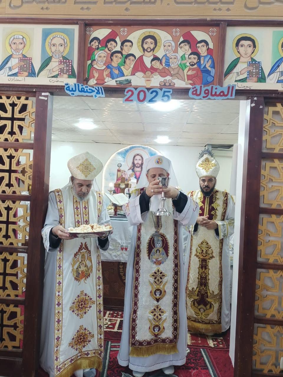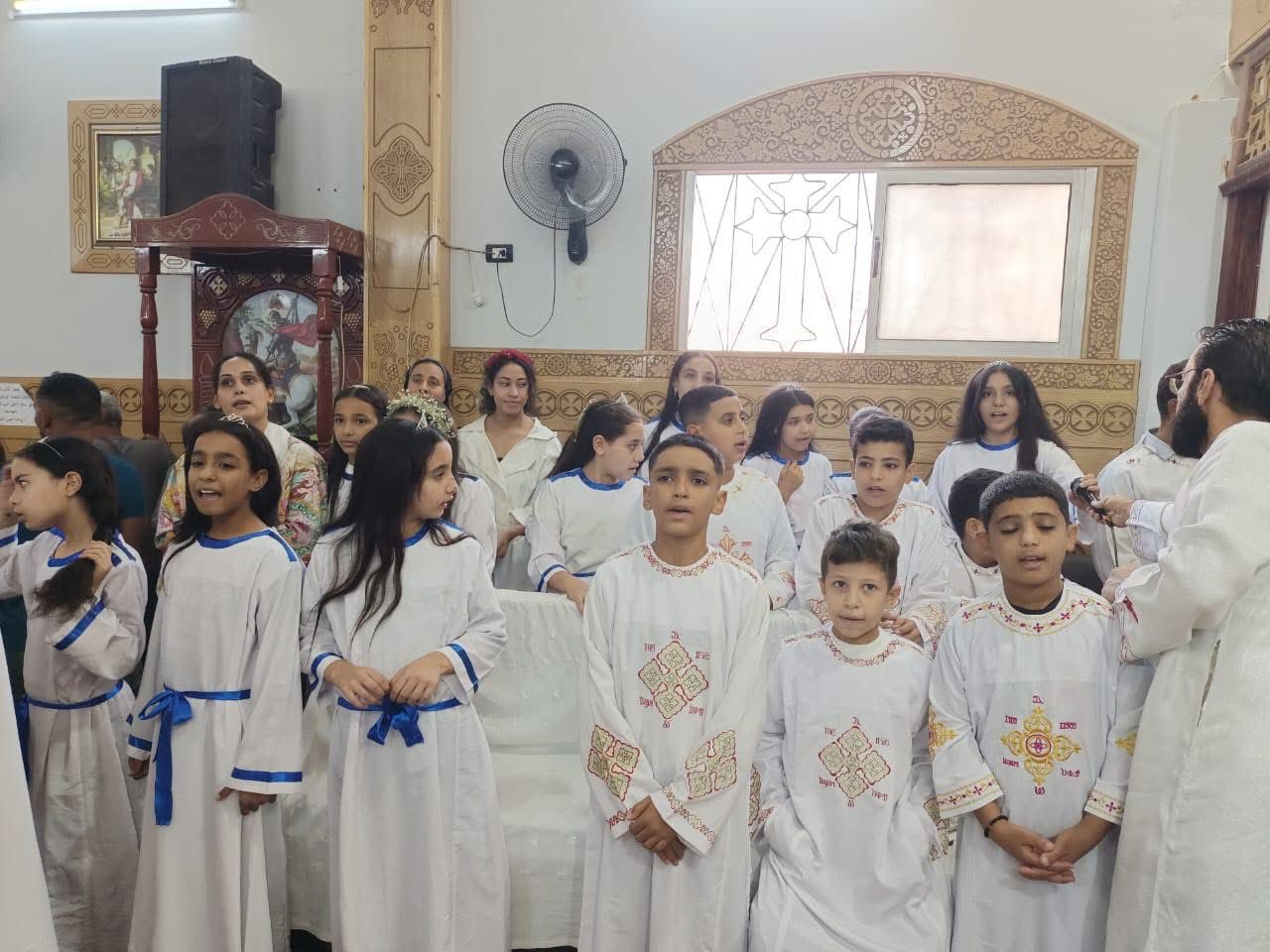 شارك في الصلاة القمص متى راجي، والأب مينا القمص متى، راعيا الكنيسة، حيث قدم صاحب النيافة الذبيحة الإلهية، من أجل السلام في العالم، و المحتفى بهم.