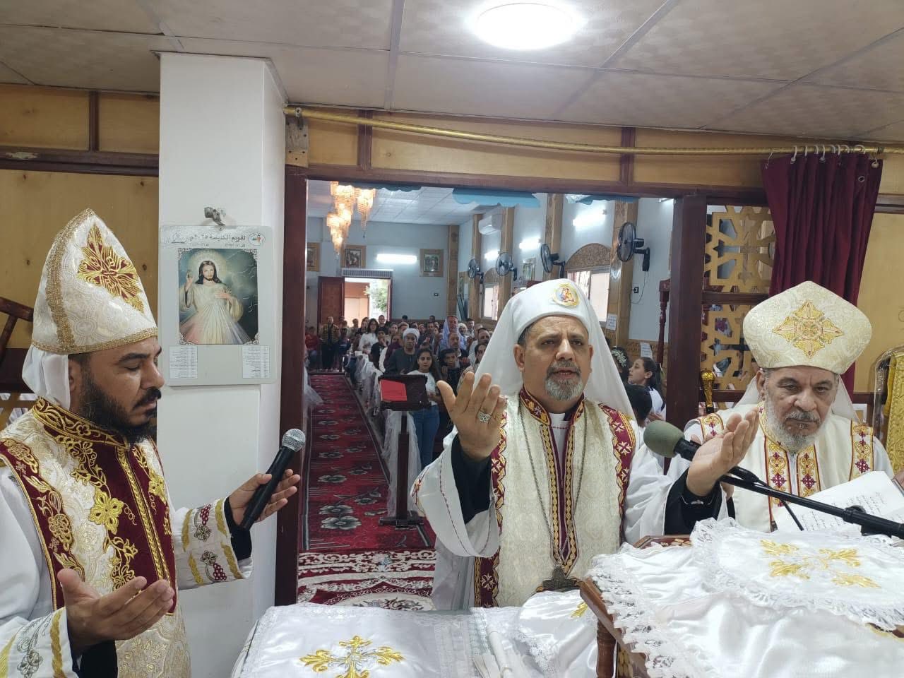 ترأس نيافة الأنبا بشارة جودة، مطران إيبارشية أبوقرقاص وملوي وديرمواس للأقباط الكاثوليك، قداس المناولة الاحتفالية لعدد من أبناء وبنات كنيسة مار بولس ومار جرجس، بمنهري.