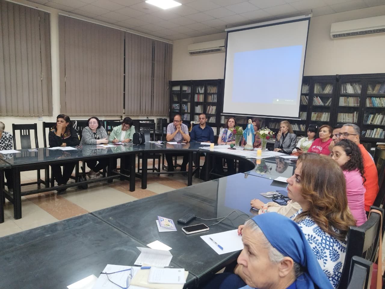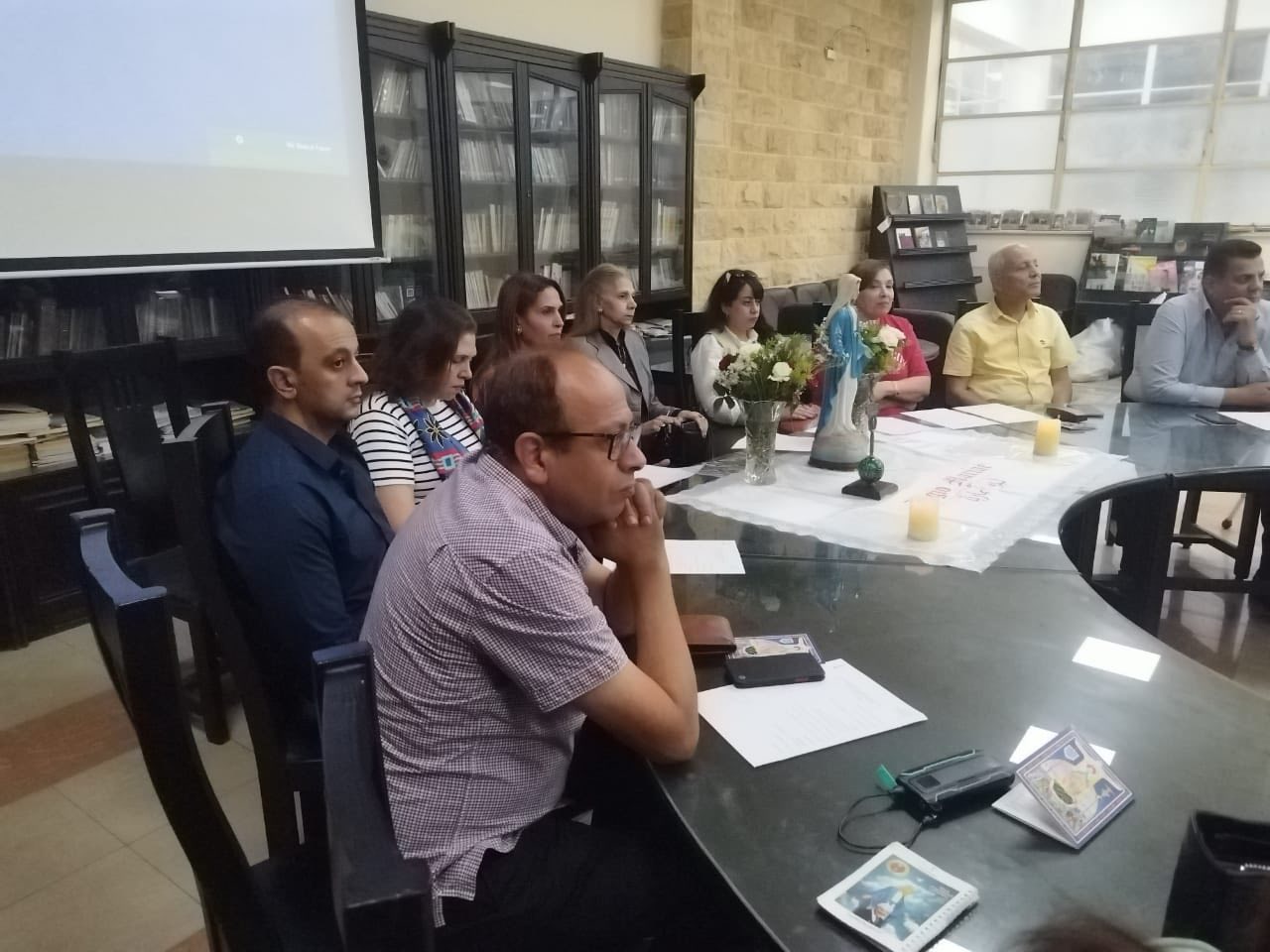 وقدم الأب هدية تامر، المرشد الروحي للمجلس الإقليمي لجنود مريم، كلمة الإرشاد حول “الجندي المريمي تحت تأثير النعمة وفي غيابها”، وثمار النعمة التي تتجلى في حياته عند استجابته لعمل الروح القدس في داخله. وعقب ذلك، تحت بحث آليات توفير احتياجات المجالس، والفرق المختلفة.