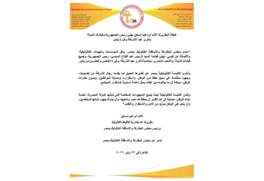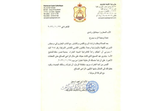 تزامنًا مع الأعياد المجيدة، التقى نيافة الأنبا عمانوئيل عياد، مطران إيبارشية طيبة للأقباط الكاثوليك، الإكليروس الإيبارشيّ في لقائهم الدوري، وذلك بمقر المطرانية، بالأقصر.