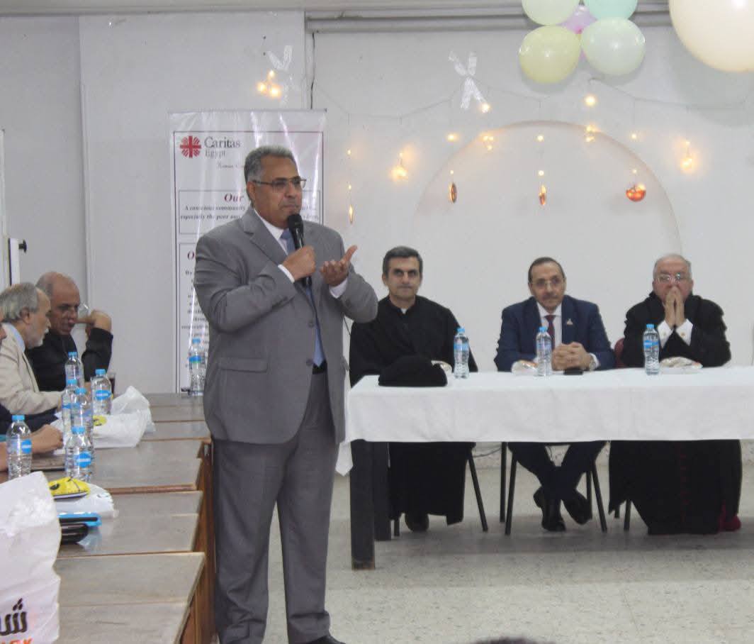 وبدوره، عبّر الدكتور أيمن صادق عن شكره وامتنانه لجميع الحاضرين، متمنيًا لهم أعيادًا مجيدة، وسنة جديدة مليئة بالنجاحات، والعطاء، مؤكدًا أهمية الاستمرار في العمل بروح المحبة، والتضامن التي تجسدها كاريتاس مصر في كل أنشطتها.