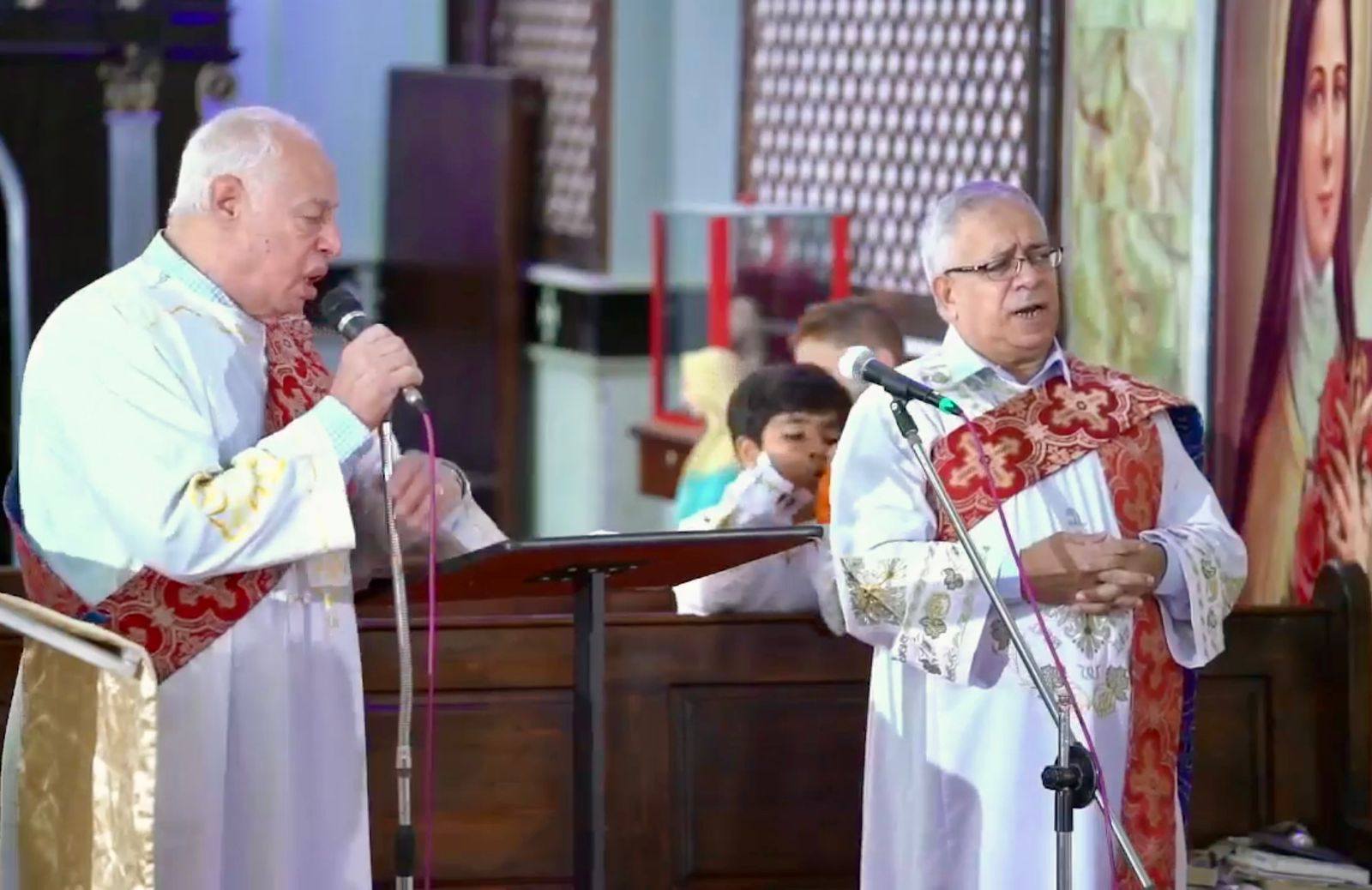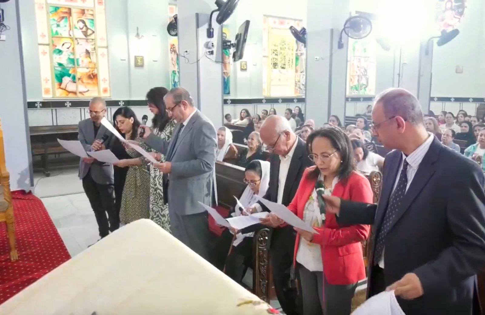 شارك في الصلاة القمص أنطونيوس غطاس، وكيل عام بطريركية الأقباط الكاثوليك بالإسكندرية، والأب باخوم عويضة الفرنسيسكاني، راعي الكنيسة، والأب فريد كمال، رئيس دير السيدة العذراء مريم للآباء الفرنسيسكان، بالمقطم، والأب ميلاد رزق، راعي كنيسة سانت كاترين، بالإسكندرية، والأب يوحنا كمال، من رهبان دير القديس أنطونيوس البدواني، بالظاهر، والأب يوحنا حربي، رئيس دير السيدة العذراء مريم للآباء الفرنسيسكان، بكفر الدوار، والأخ أنطونيوس أبوالخير.