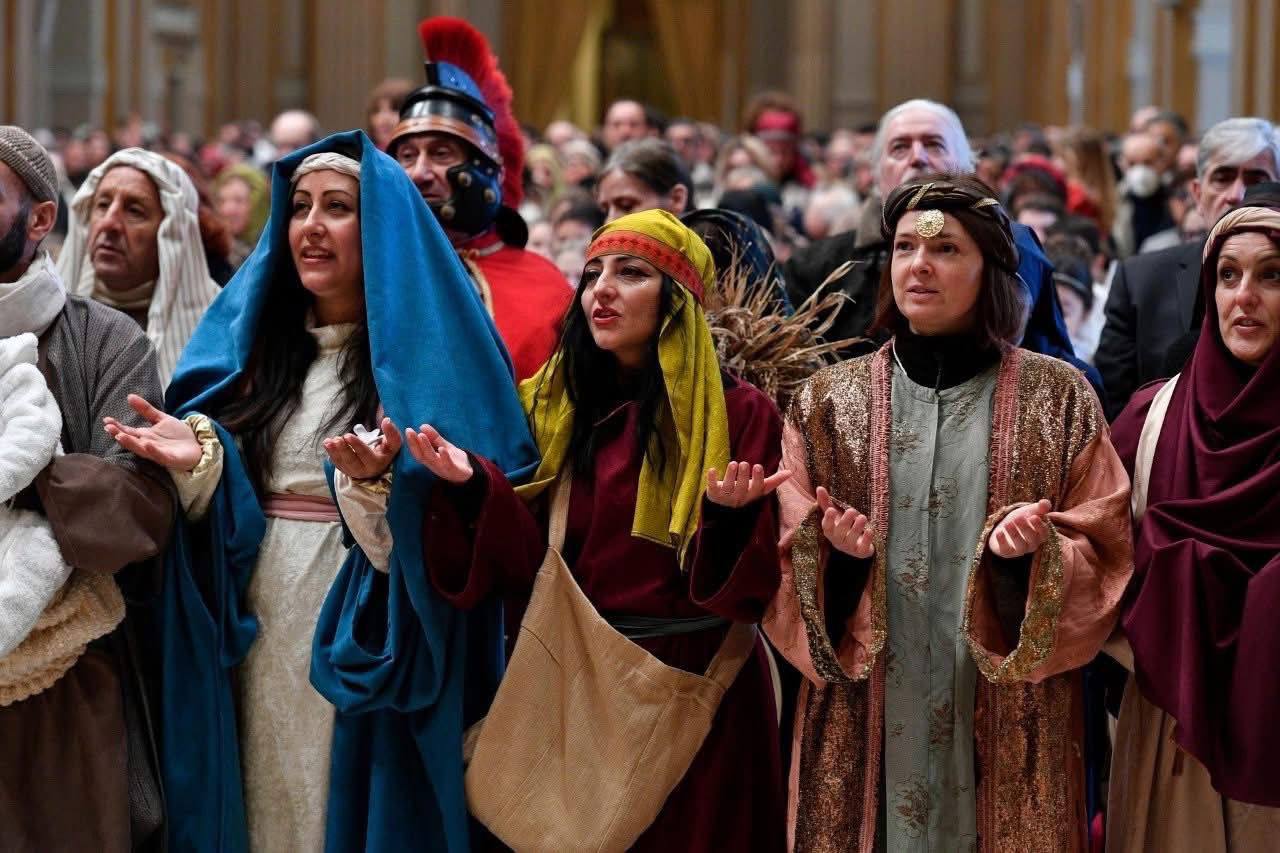 ورحّب الأب الأقدس بالحشود التي وصفها بأنها تحمل شهادة آلاف الوجوه إلى جوار قبر القديس بطرس، موضحًا أن هذا التقليد، الذي يجسّد سرّ التجسّد بملامح ثقافات، وأراضٍ مختلفة، يتواصل بمسيرة عبور الباب المقدّس، والاحتفال بالإفخارستيا في بازيليك القديسة مريم الكبرى، المعروفة ببيت لحم الغرب، ومكان تكريم المهد المقدّس.