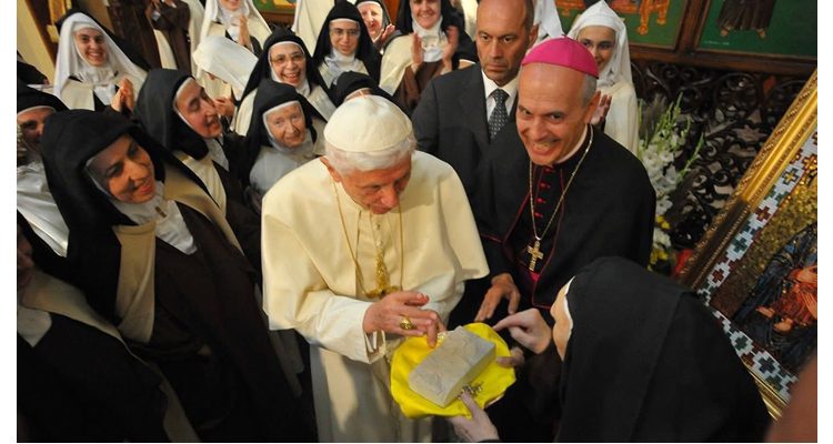 وفي عهد البابا بندكتس السادس عشر، حملت زيارته إلى لبنان عام 2012 روحًا من الأخوّة، والحوار، مؤكدًا ضرورة تعاون الكنائس، وتلاقي الديانات، ومشددًا على إمكانية أن يكون لبنان، نموذجًا للتعايش في الشرق الأوسط، والعالم.