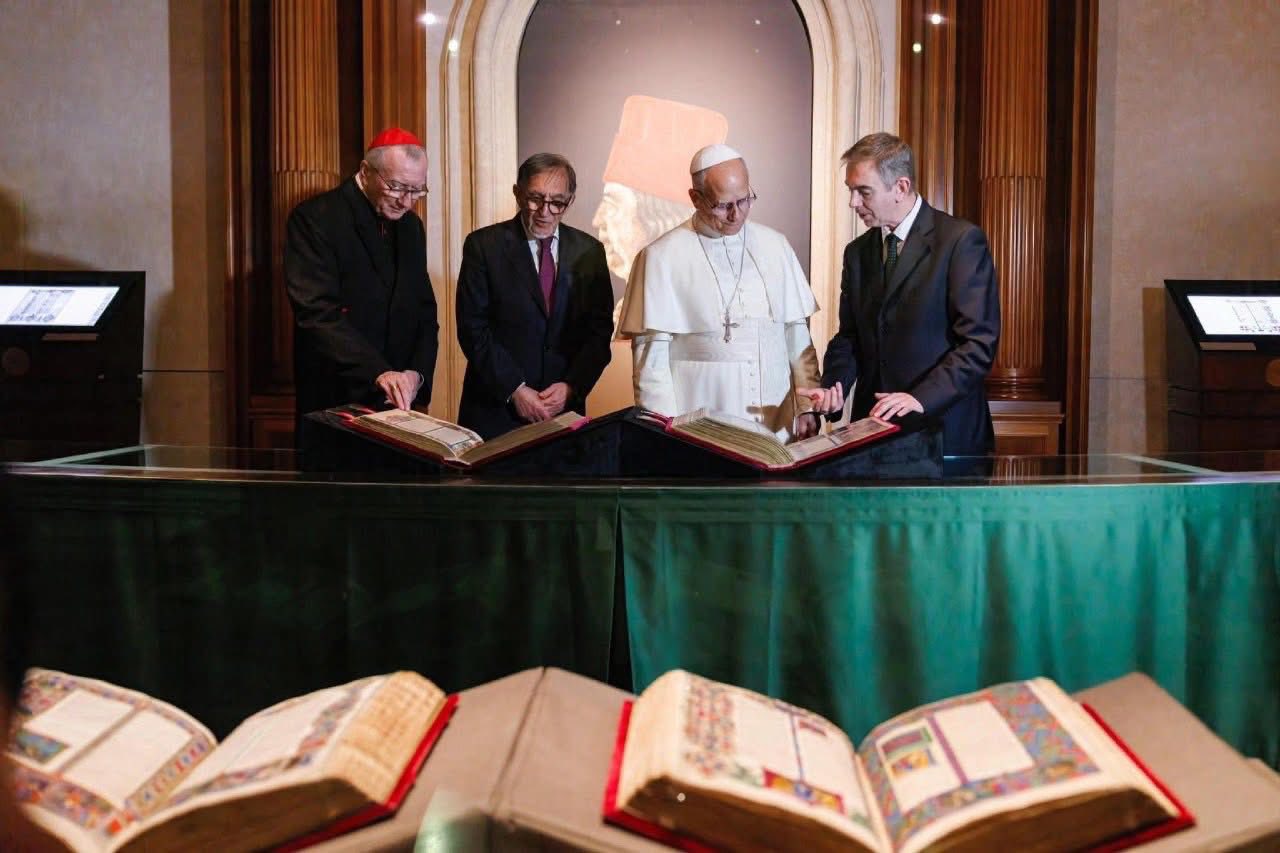 زار قداسة البابا لاون الرابع عشر، مكتبة مجلس الشيوخ الإيطالي، يرافقه أمين سر دولة حاضرة الفاتيكان، غبطة الكاردينال بييترو بارولين، حيث اطّلع على معرض خاص يضم مخطوطًا نادرًا يتمثل في إنجيل مُصغّر أُنجز في إيطاليا بين عامي 1455، و1461، ويُعد من القطع النادرة التي نادرًا ما تُعرض للجمهور.