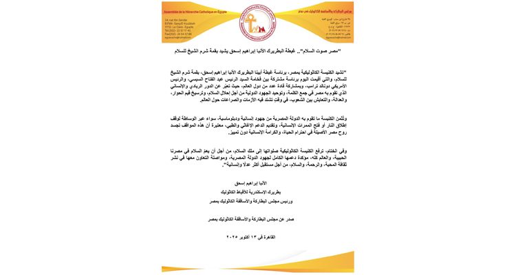 مصر صوت السلام.. غبطة البطريرك الأنبا إبراهيم إسحق يشيد بقمة شرم الشيخ للسلام في المواقع الإخبارية