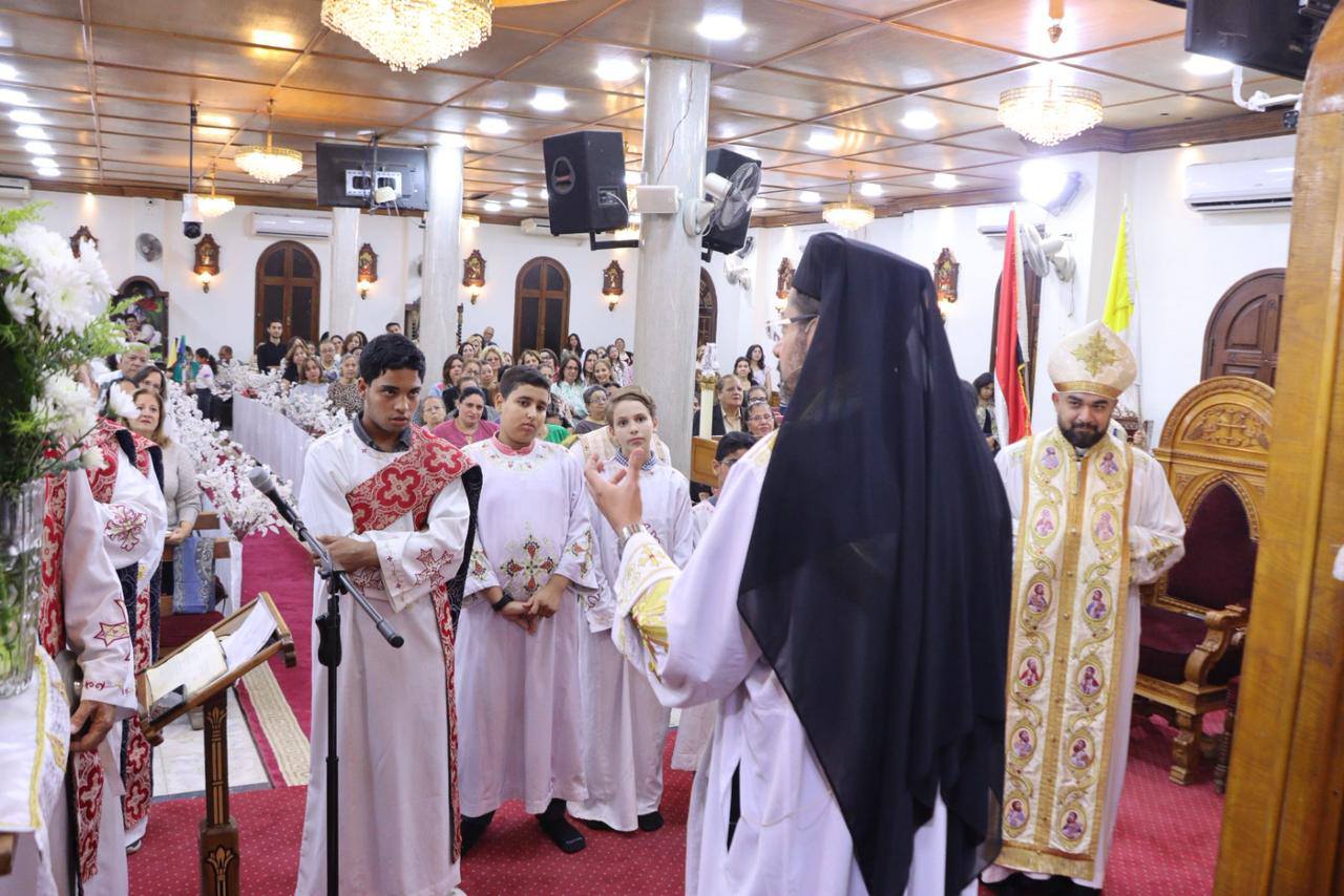 وألقى الأب المطران عظة الذبيحة الإلهية، ناقلًا في بدايتها سلام وصلوات غبطة أبينا البطريرك الأنبا إبراهيم إسحق، إلى شعب الرعية، ثم قدم نيافته تأملًا روحيًا للحاضرين بعنوان “نترك لنحب”.