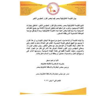 الكنيسة الكاثوليكية بمصربيان الكنيسة الكاثوليكية بمصر فيما يخص القرار الحكومي الأخير3 أيام ago3 أيام ago42تتابع الكنيسة الكاثوليكية بمصر باهتمام بالغ القرار الحكومي الأخير، المتعلق بإجازات الإخوة المسيحيين، وتعرب عن أسفها لعدم تحقيق المساواة الكاملة...